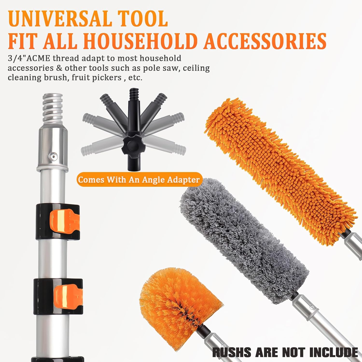 • Versatile and Convenient: The telescopic pole features a 3/4" Standard Universal Thread, allowing it to connect to various universal threaded tools. This includes paint rollers, squeegees, cobweb dusters, ceiling fan dusters, fruit picking tools, light bulb changers, and other home improvement adapters.And when retracted, the pole is just 5 feet long,it makes storage a breeze.
