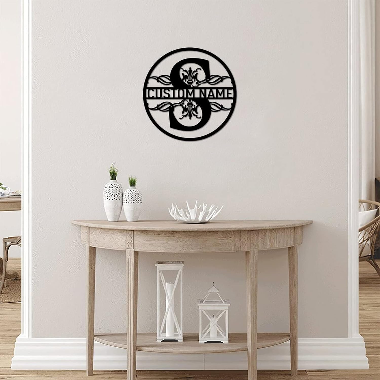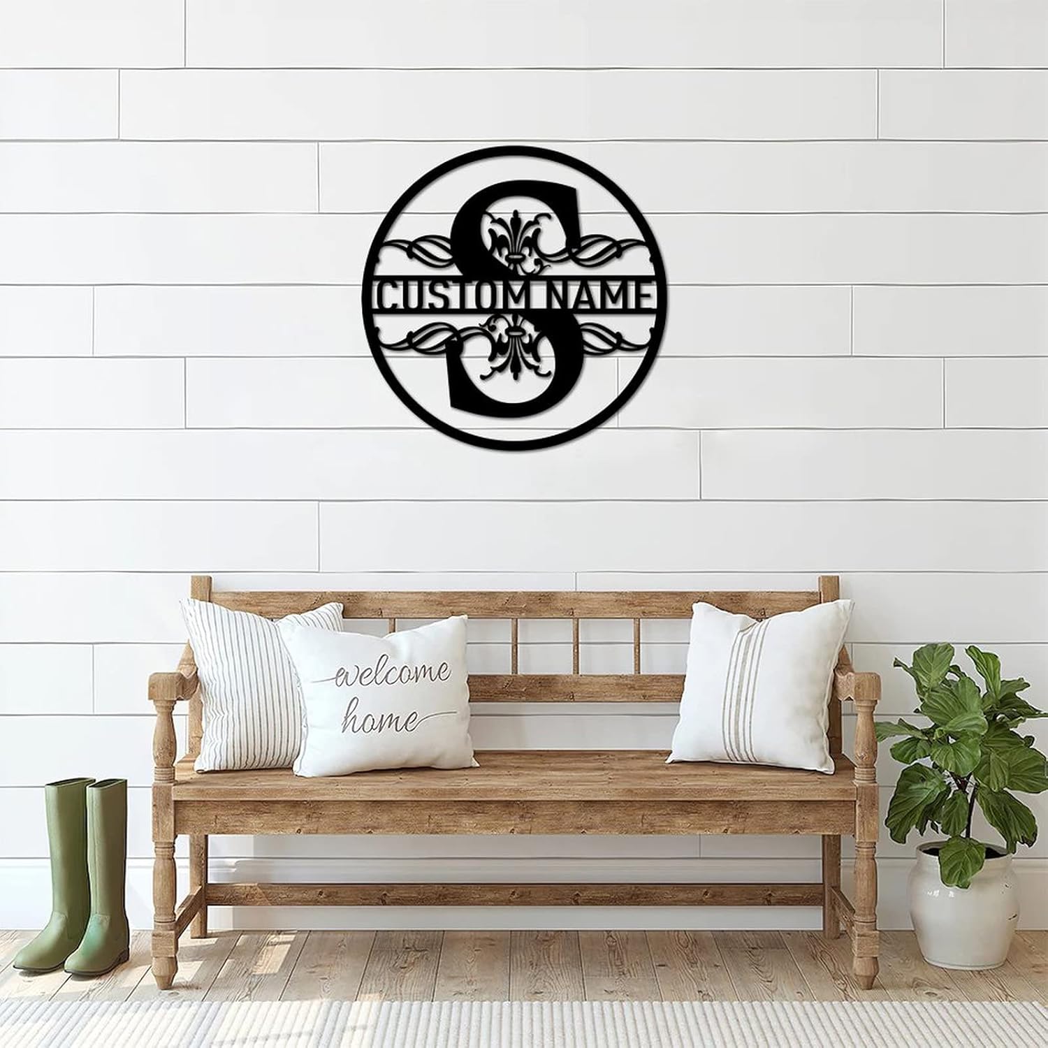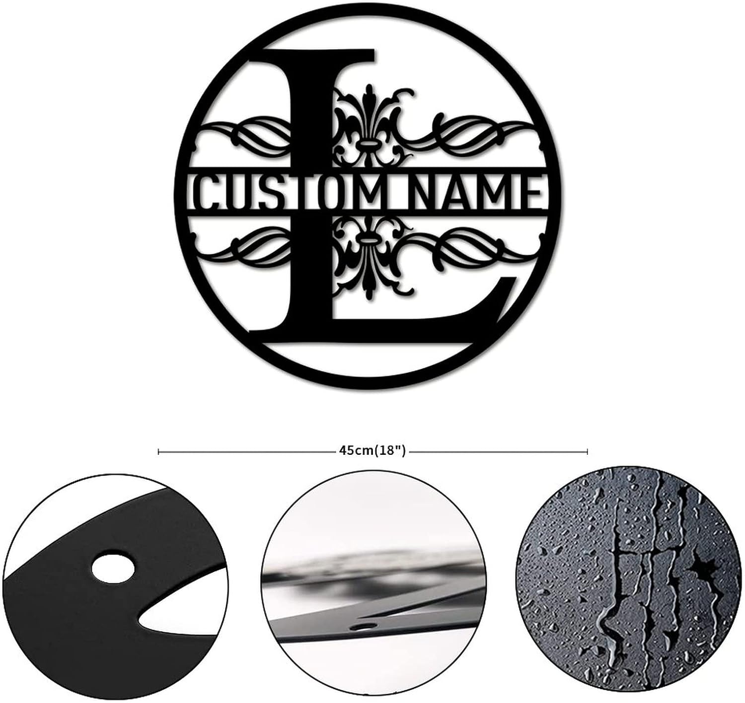 Material:The metal sign is made from high quality laser-cut iron material with exquisite workmanship which has a graceful appearance and durable enough for long time indoors and outdoors use.Dimension:The metal wall sculpture sign has five kinds of length to choose from: 12inches(30cm), 18inches(45cm), 24 inches(60cm), 30inches(75cm) and 36inches(90cm). All of them are the ideal size as an exquisite wall decor for your home and farmhouse. Please also note that the thickness of the metal sign is about 0.04inches(1mm).Color:The default color of the metal laser cut sign is black. And the color can be customized. Please kindly check the attached color chart as reference.Installation:The metal wall art sign comes with pre-drilled holes. Super easy to mount it with screws, wires, ropes, cord or string and hang it on the wall, door, gate, window, fence or pole. Take several minutes to make your home and farmhouse more elegant and warming.Application:Best decoration for home, farmhouse, living room, bedroom, bathroom, kitchen, dining room, man cave, workshop, front and back door, entryway, garage, porch, deck, pond, patio, barn, garden, yard, beach house, lake house, cottage, cabin, office, cafe, bar, pub, shop and store. Not only a wonderful gift for dad, mom, family, friends and who you love. But also a good idea for new home, new store opening, housewarming, birthday, baptism, wedding, celebration, anniversary, graduation, retirement, thanksgiving, Halloween, Christmas, new year and where love needed.Customization:Both the number and text on the metal cut sign can be added or changed. And the pattern of the metal sign also can be personalized. Please put your custom information on the customization page. If you have any additional requirement, please send us a message before you placing the order and we will answe