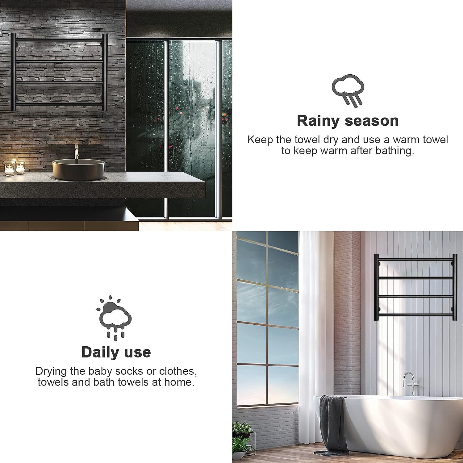 Color: Brushed Gold Product Name: Electric towel warmer Voltage: US: 110V-120V Power consumption: 48 W Material: 304 Stainless steel Finish: Brushed finish Heating time: 5-10 minutes Temperature: 45° C- 55° C Waterproof grade: IP56 Outgoing direction: Right outgoing line Mount Type: Wall Mounted Power Type: Plug in or Hardwired Main functions: Dry, constant temperature, waterproof Usage: Home bathrooms, hotels, and spas etc. Size: 17.7x 21.3 x 4.7 inch(450x540x120mm) What's included: 1pc towel warmer rack + Installation accessories + Installation manual(chinese or english) Warm reminder note: Manual measurement of various sizes has a certain error. Please refer to the actual product! The project may be slightly different from the picture due to the display of lights and displays.