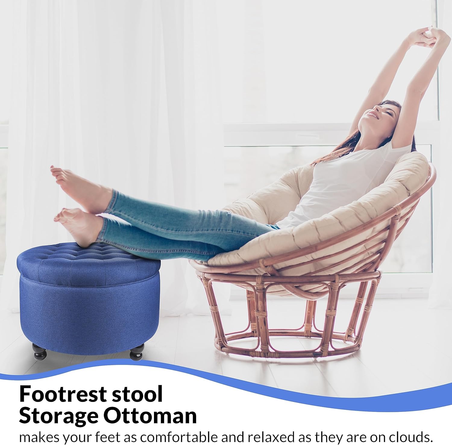 • VERSATILE - This beautiful piece looks great in the living room, entryway, hallway, office, laundry, mud room, or closet! Experience the ultimate in functionality with our versatile ottoman, which triples as a footrest, chair, and storage unit