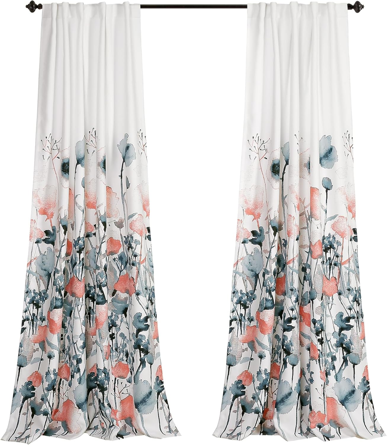 Zuri Flora Sheer Window Curtains make an absolutely stunning addition to any room in the home. The pattern resembles a lush, flourishing flower garden with blooms growing up the curtain panels from the bottom. Printed on light blocking fabric.