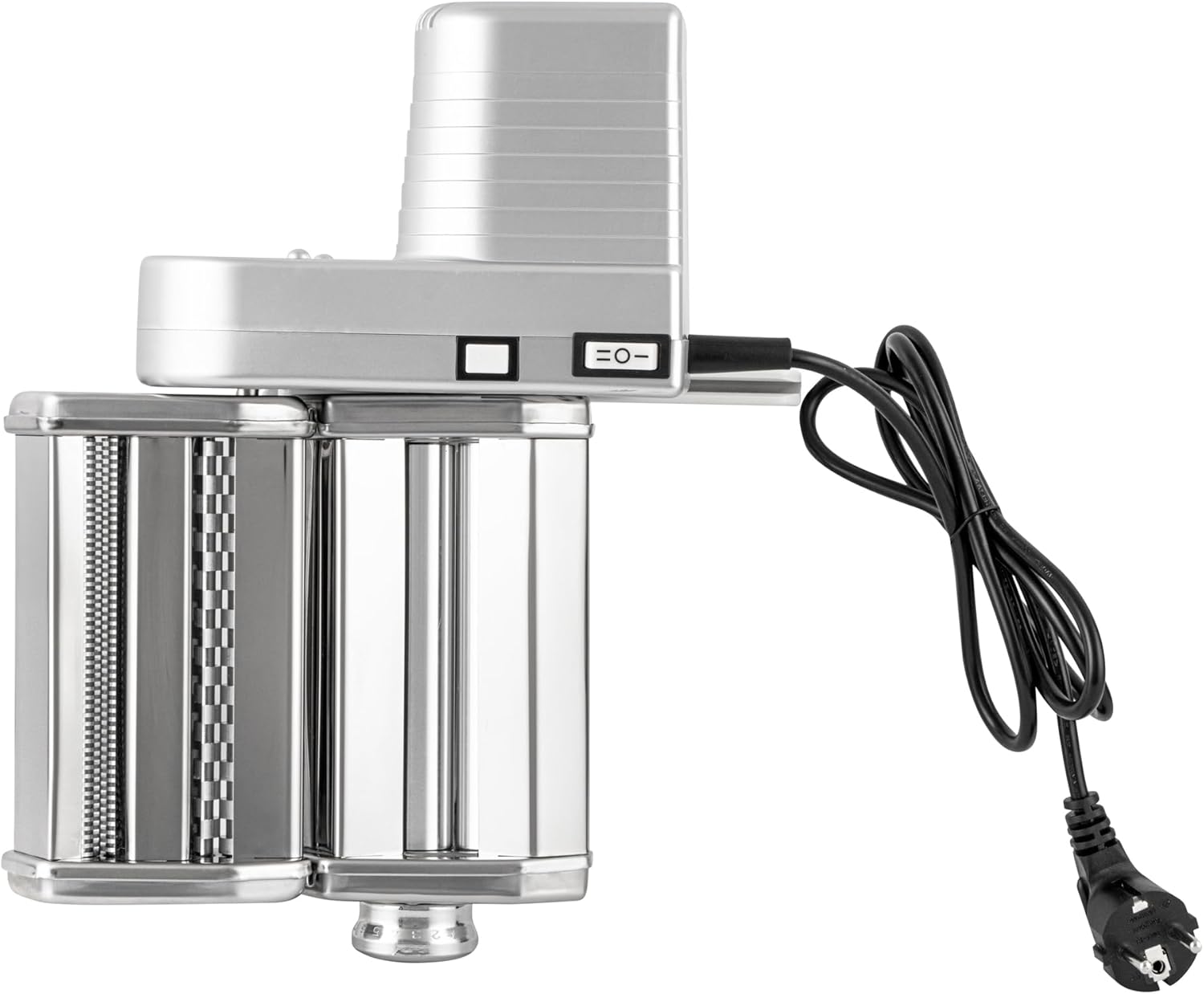 • HYBRID CONVENIENCE: With a 110-220V motor and a 90W power setting, this pasta roller easily rolls pasta with almost no effort. Achieve scrumptious pasta either manually or with an electric motor!