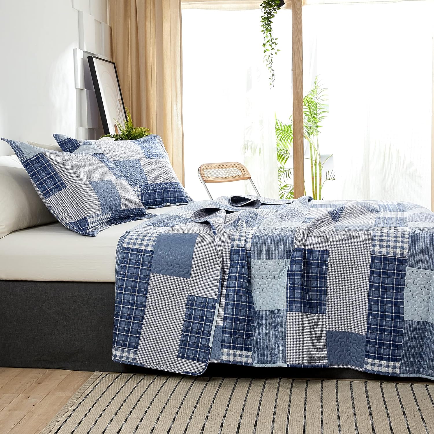 • 【All Seasons】Plaid pattern design is made for all seasons,especially in spring and summer.Use it with a blanket or sheet underneath for warmer weather. As a quilt to provide warmth with comforter under it in cold weather.