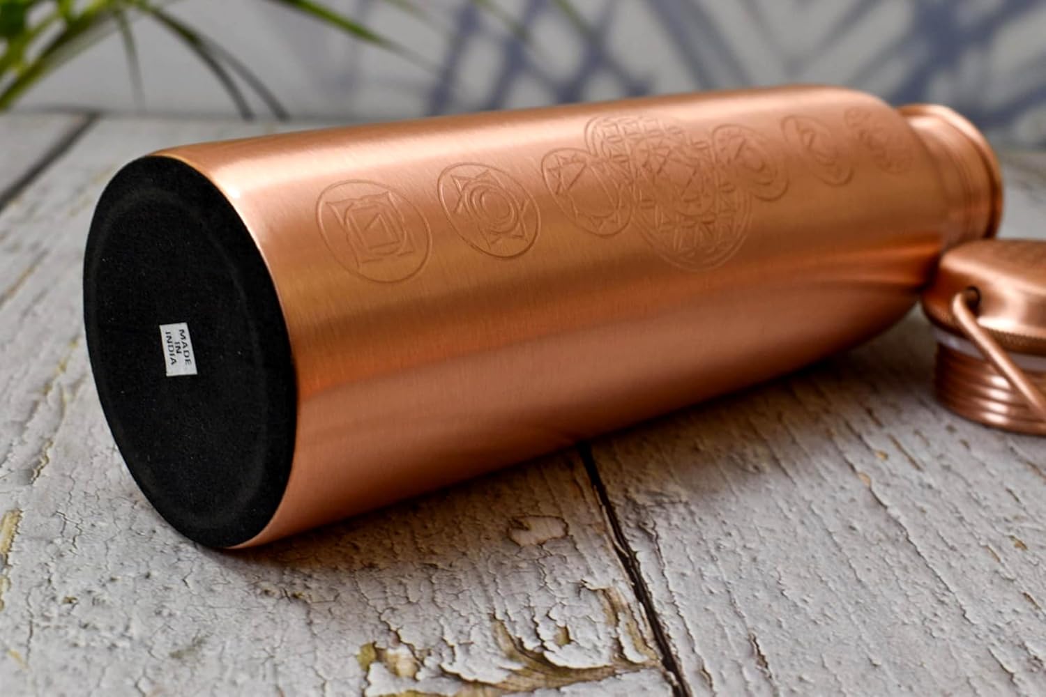 Stay hydrated in style with our Pure Copper Water Bottle, designed to provide both health benefits and a touch of elegance. Handcrafted from 100% pure copper, this bottle is not only a beautiful accessory but also a practical choice for your daily hydration needs. Made from high-quality, durable copper, ensuring you receive the full benefits of copper's natural properties. Copper is considered an essential mineral for our body. Ayurveda recommends storing water overnight in a copper jug and drinking it first thing in the morning to maintain good health.