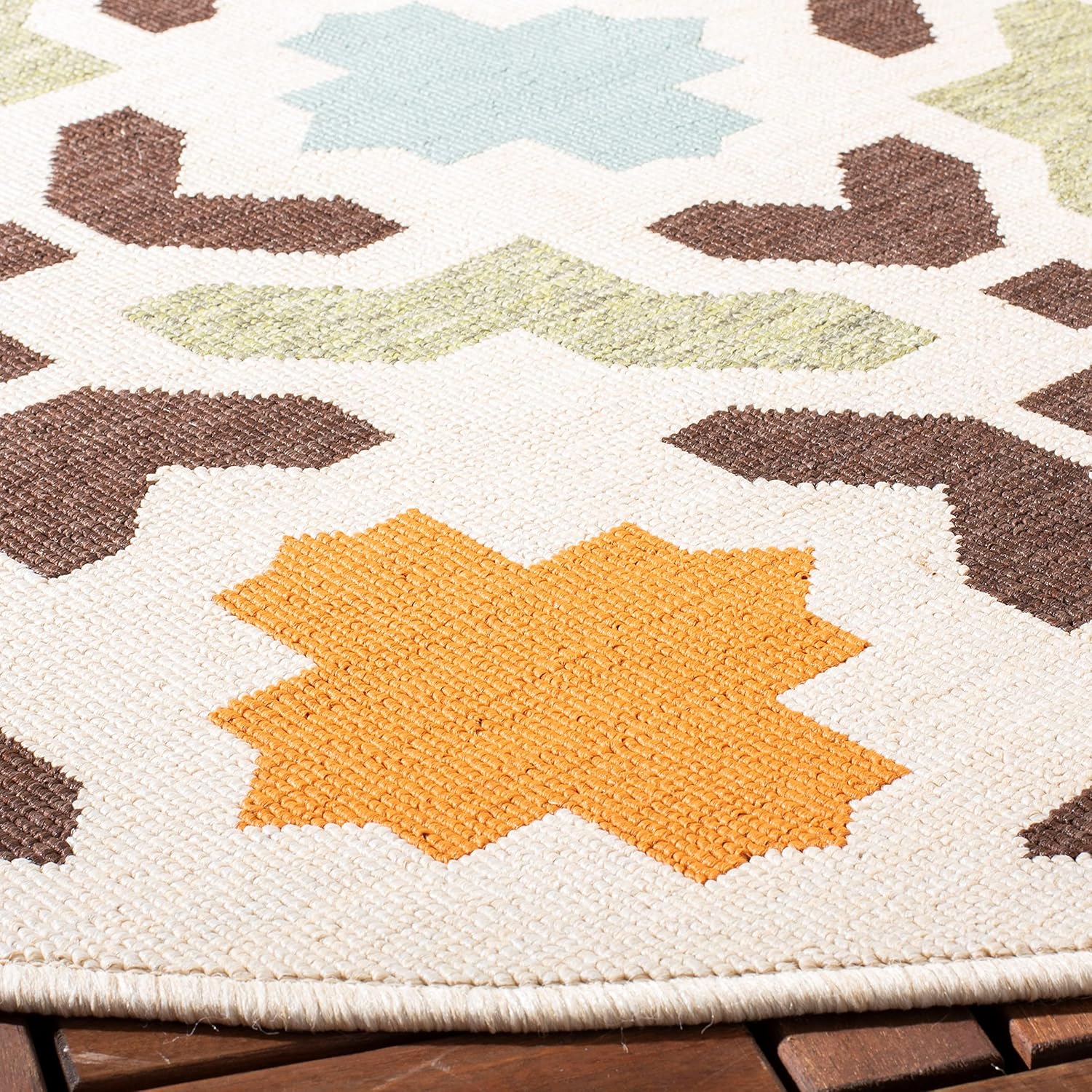 Perfect for any backyard, patio, deck or along the pool, this rug is great for outdoor use as well as any indoor use that requires an easy to maintain rug. Coordinate indoor and outdoor spaces with pretty and practical area rugs from the Veranda collection in designs from mod floral to traditional classics.