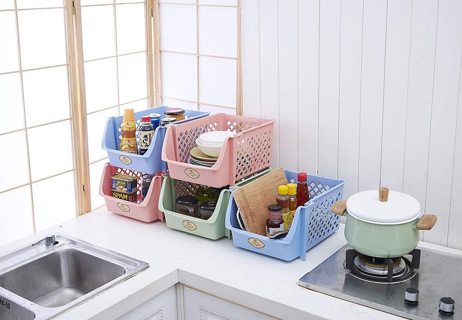 Save space and organize all your necessary household items with the Skywin Plastic Stackable Storage Bins for Pantry. The product includes four stackable and color-coded storage bins that can be used to store pantry items, toiletries, and other small household essentials. You can classify and segregate all your items and use the different colors to easily identify each category. Comes in blue, green, pink and khaki colors. Its open front design lets you get the contents without removing the bins placed on top, while the mesh sides allow airflow and ventilation to keep the contents fresh. Effortlessly organize your daily household items with the Skywin Plastic Stackable Storage Bins. They’re so light and easy to use, even kids can use them