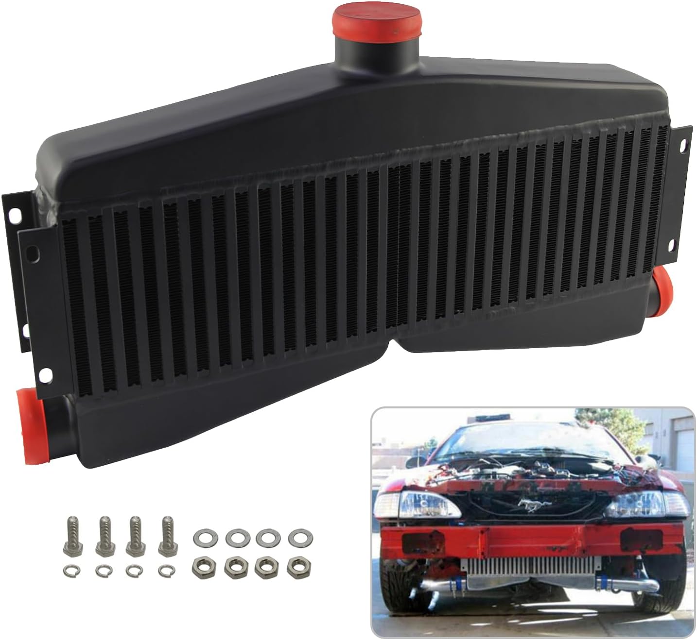 Application: Universal Description: Max Horsepower Capacity: 400-800HP Core Length: 24"(610mm) Core Height: 7"(180mm) Core Thickness: 3.5"(89mm) Inlet x2: 2.5"(63mm) Outlet x1: 3"(76mm) Pressure Drop: 0.2-0.5 @15psi, 2-5psi @35psi Material: 100% Aluminum Design: Bar and Plate = High Flow Construction: Machine Cut&Stamped, Hand Welded Include: 1PCS Aluminum Intercooler Note: Doesn't come with installation instructions We recommend professional installation Only. Customs: **WE DON'T SHIP TO P.O. BOXES and A.P.O BOXES *